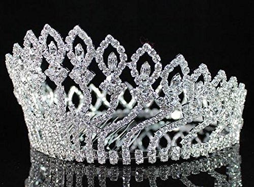 You are looking at stunning large size floral full crown. Sparkling Clear Genuine Austrian rhinestones are set in a beautiful silver-plated setting. There are 2 pin loops and one hair comb interior to help security. All rhinestones sparkle a lot and are prong set by hands! This crown is full of sparkle! It is perfect for pageant, prom or any special occasions. Thanks for looking!Feature