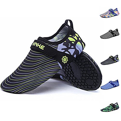 -. Feature : LIGHTWEIGHT: It is easy to carry and when you wear it, you won't even notice you are wearing it. / FASHION WITH VELCRO: With velcro, it is not only more fit your feet, but also its unique design makes it does not look like water shoes. / THICKENING SOFT RUBBER SOLES: With a thick-enough soft rubber sole, you don't have to worry about stepping on stones or rocks. / QUICK-DRY AND NONSLIP: It is quick-dry and keeps you from slipping in the tub, at the pool or just while washing your car or watering the yard and so on. / MULTIFUNCTIONAL: You can wear it for Swimming, Jogging, Sand Volleyball, Driving, Yoga, Lake, Beach, Garden, Park, Boating, Fishing and so on.