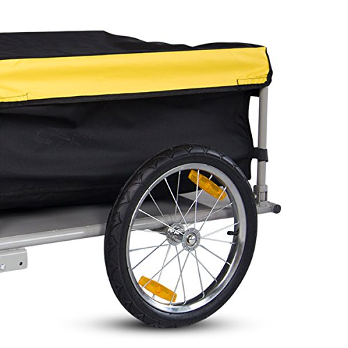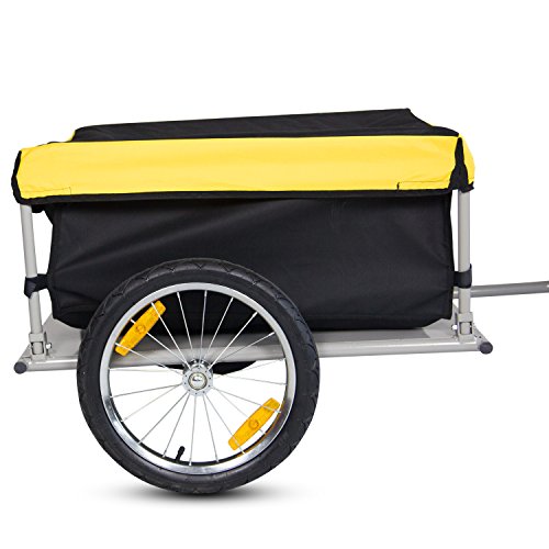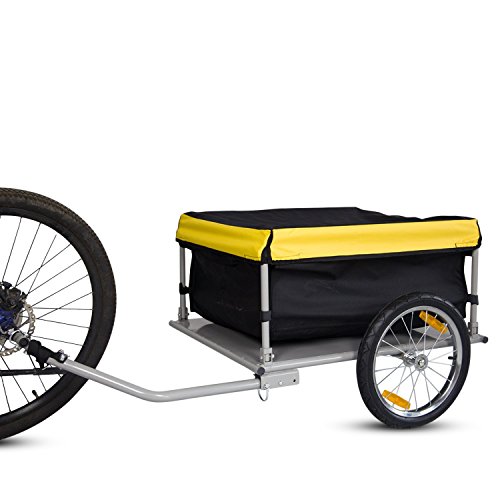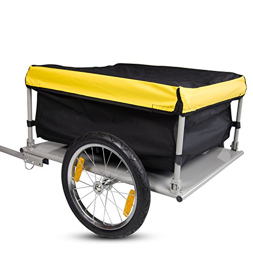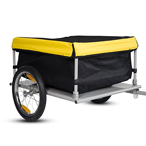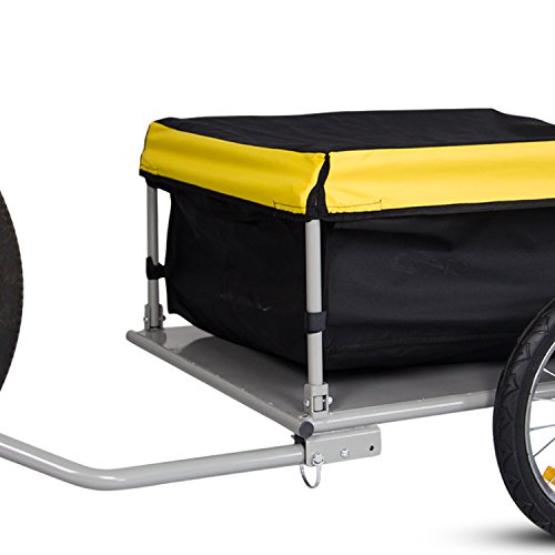 -. Binding : Misc. -. Brand : Peachtree Audio -. EAN : 6286200673600 -. Feature : -Steel frame and strengthened bottom / -Easy to assemble and fold up for storage / -The nylon cargo bag is tied to mental posts with Velcro, including a removable elastic canvas lid / -The yellow cover which is elastic type grid, fitting snugly to the frame for security and provides additional visibility in traffic / -A free bicycle hitch adaptor/connector included for connecting to the axles. Hook it up to the rear axle of bicycle while using it -. Label : GuangBo -. Manufacturer : GuangBo -. PackageQuantity : 1 -. ProductGroup : Pet Products -. ProductTypeName : PET_SUPPLIES -. Publisher : GuangBo -. Studio : GuangBo -. Title : Peach Tree Steel Frame Bicycle Bike Cargo Trailer Lage Cart Carrier For Shopping, Black&Yellow
