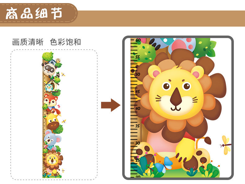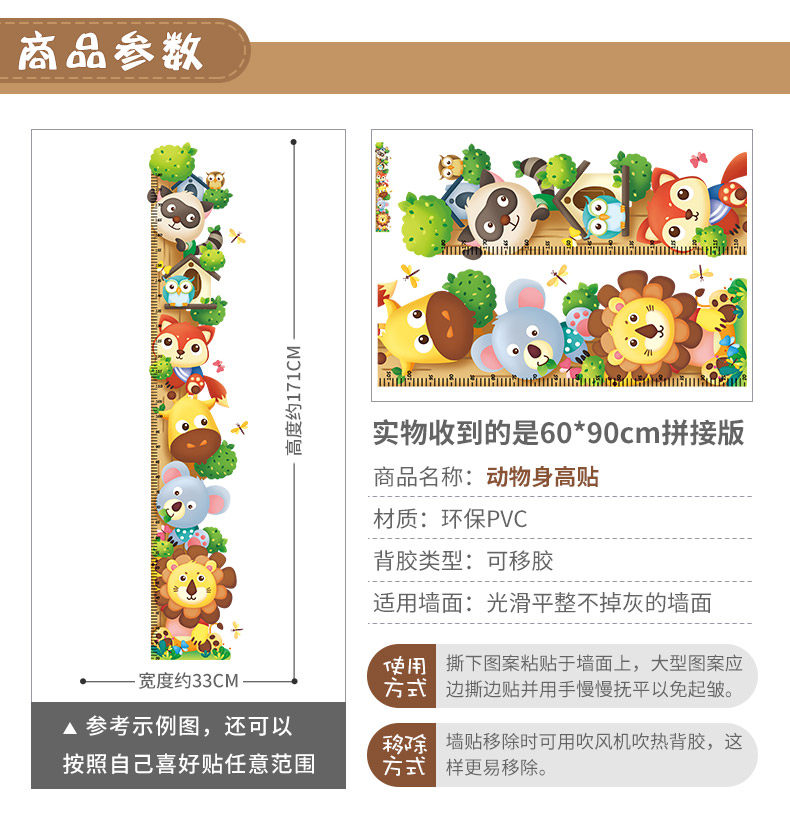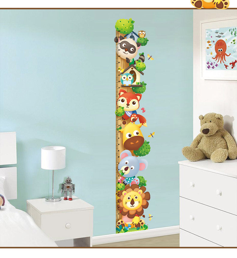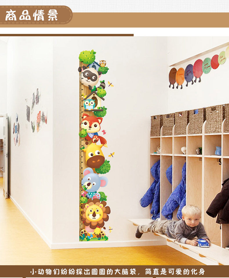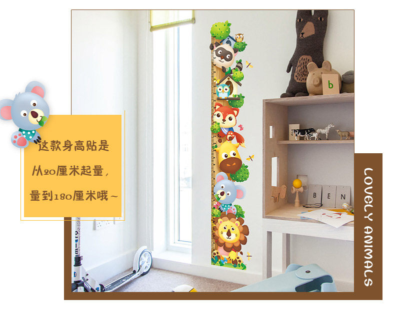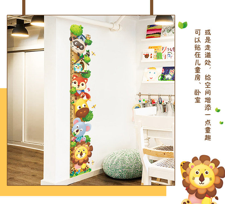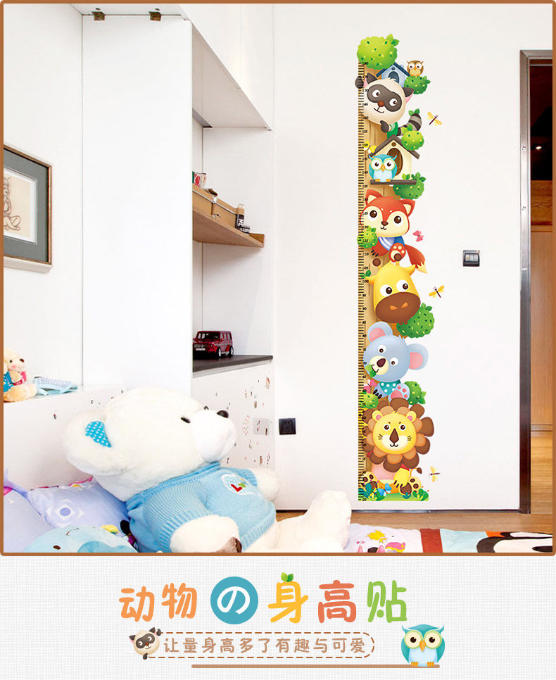 儿童房间卧室装饰品贴画卡通小动物幼儿园测量身高墙贴自粘可移除