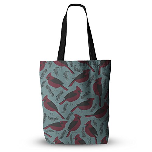 KESS InHouse Everything Tote Bag Michelle Drew Red Winter Birds Teal