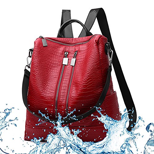 -. Feature : MATERIAL: High quality PU leather, smooth and delicate texture, durable in use.heavy duty zippers and brown fabric lining; adjustable canvas/leather strap to prevent slidding off your shoulder. Every stitching joints have been reinforced for durability. / DIMENSIONS --- 12"(bottom length) x 13"(height) x 5.5"(bottom width). the weight is 1.5 lb. Approx Dimensions:31cm L x 15cm D x 33cm H . / WELL ORGANIZATION --- Exterior: 2 front zipper pockets, 1 back zipped pocekt, 2 side open pockets. Interior: 1 big compartment with 2 open pockets and 1 zipped pockets. / SPECIAL 3-WAY CARRYING --- Convertible versatile bag! You can carry it as a handbag/single shoulder bag/backpack as there is a removable short shoulder strap (shoulder drop is 11"). / LARGE CAPACITY --- This backpack can accomodate your books, small makeups, notebook, wallet, umbrella and 13" thin laptop whose size is under 12.99"(length) x 9.1"(width), and so on.