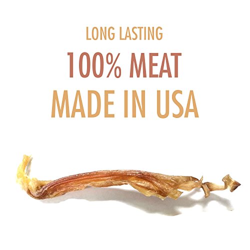 -. Binding : Misc. -. Brand : Natural Rapport -. EAN : 0714496103151 -. Feature : 100% MEAT USDA Approved Beef Tendons - No Chemicals - No Preservatives - No Artificial Flavors / PROMOTES DENTAL HEALTH These Dog Chews encourage dental hygiene for dogs - Helps reduce tartar and cleans teeth / LONG LASTING DOG CHEWS - These Beef Tendon chews are a great source of lean protein and last longer than tyical dog treats! / SOURCED & MANUFACTURED IN USA - Our odor-free beef is from the USA, smoked in the USA and packaged in the USA - 100% Satisfaction Guaranteed / SMOKED WITH REAL WOOD - We use real wood to smoke our all-meat pet treats. We do NOT use the industry standard "liquid smoke" chemical products to flavor our meats. -. Label : Natural Rapport -. Manufacturer : Natural Rapport -. PackageQuantity : 1 -. ProductGroup : Pet Products -. ProductTypeName : PET_SUPPLIES -. Publisher : Natural Rapport -. Studio : Natural Rapport -. Title : Beef Tendon Dog Treats - 100% Beef - Made in USA - Longer lasting, odor-free dog chews - 4-count -. UPC : 714496103151