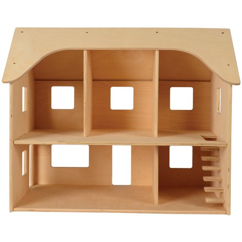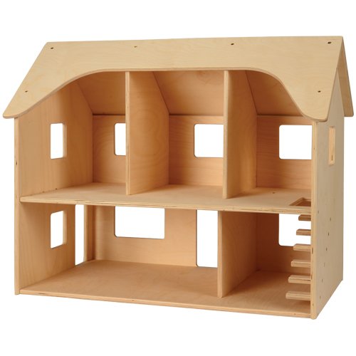 -. Feature : A fixed-roof, open back hardwood dollhouse is sturdily constructed to last / Measures 24" l. X 16 1/2" w. X 19 1/2" h / Ships fully assembled / Ages 3 yrs. +