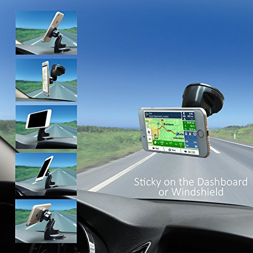 Car Mount Holder,2-in-1 Dashboard Car Phone Holder, 360 Degree Adjustable for iPhone 7 7 Plus/ 6s Plus/6s/6, Samsung Galaxy S8 Edge S7 S6 Note 5, Nexus 6, & Smartphones