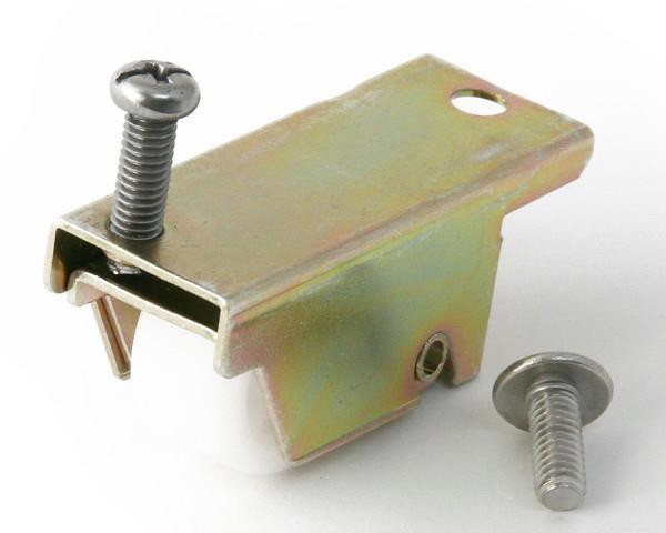 下部切り込み口より戸車を差込み、ビスにて固定します。
