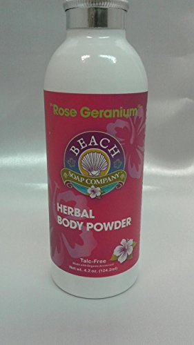 -. Title : Talc Free Organic Body Powder, Rose Geranium Scent. Made and sold by Beach Organics. 4.2 oz.