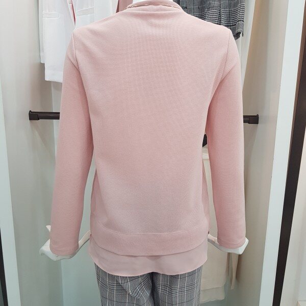 와플조직 소재의 기본 반하이넥 스타일로 밑단에 폴리원단으로 포인트줌봄가을추천