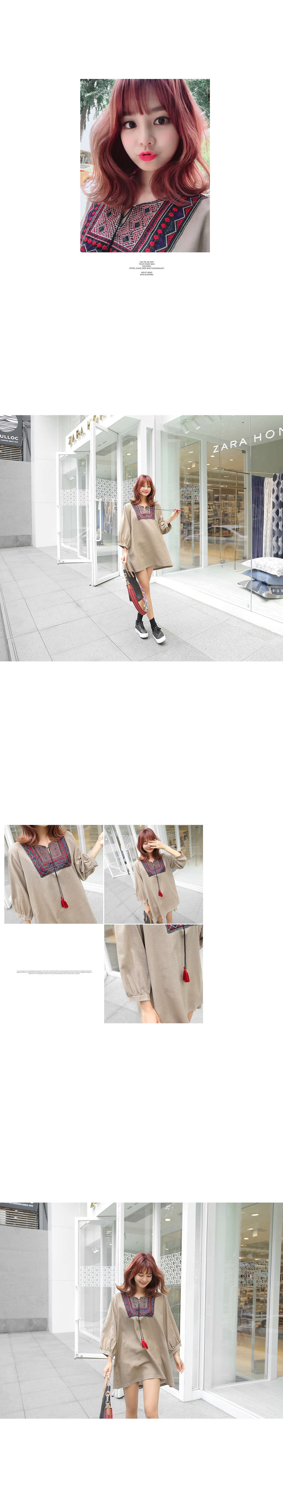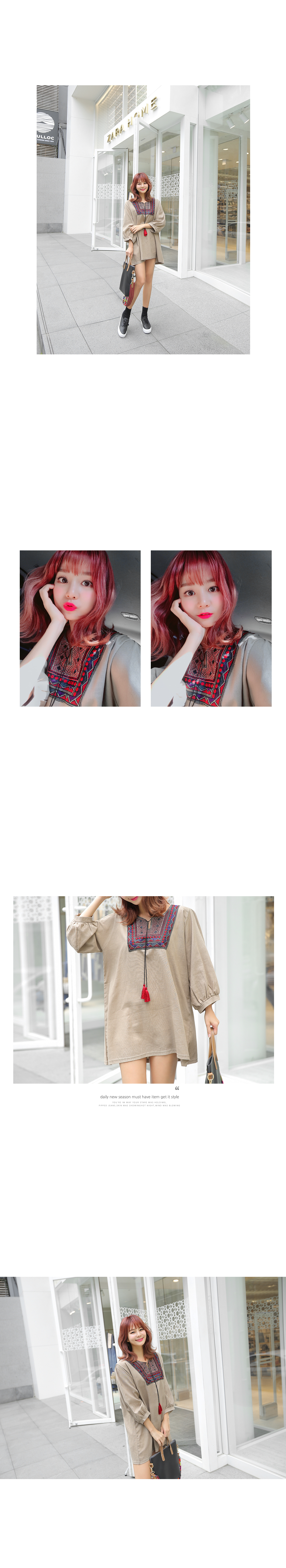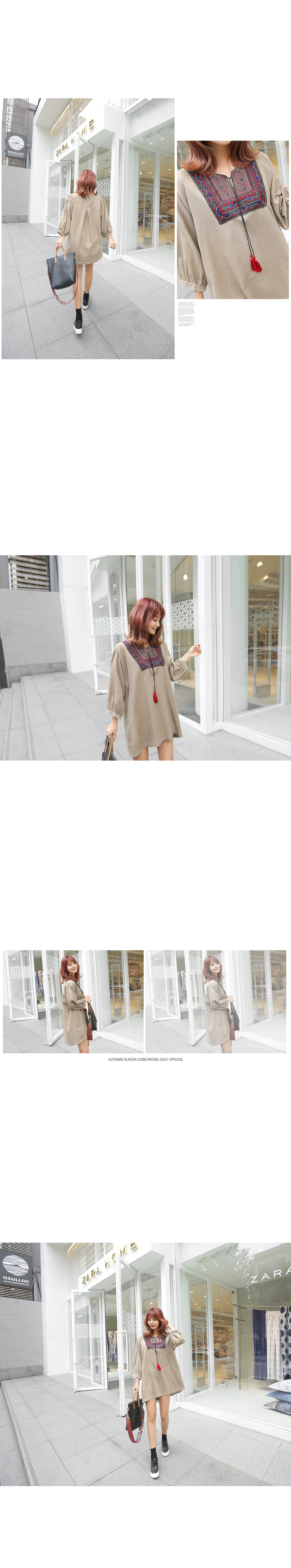 또한, 넥 라인을 따라 멋스러운 자수 디테일을
