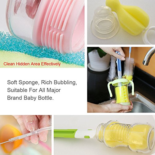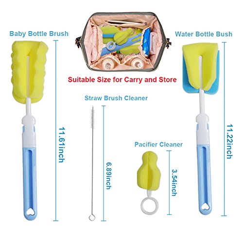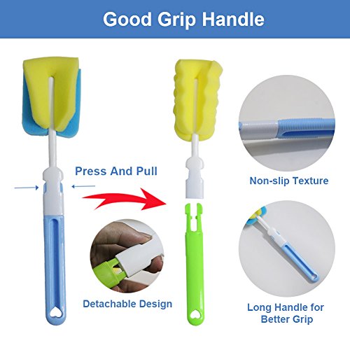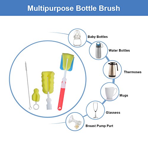 -. Feature : ♣♣【ERGONOMIC DESIGN】 Each baby bottle brush set includes bottle brush, straw brush, teat or pacifier cleaning brush, covering all the aspects of bottle cleaning! / ♣♣【SAFE AND ECO-FRIENDLY】 High quality sponge, PP and stainless steel; nontoxic nylon, BPA free, FDA-approved bottle brush set; mom clean with ease; baby drink more safely. / ♣♣【DETACHABLE DESIGN】 With long detachable handle, our baby bottle brush helps you easily reach the bottom of the bottle, remove stains with 360 °; thoroughly clean bottles. / ♣♣【CONVENIENT TO USE】Baby bottle cleaning kit is perfect for cleaning bottom corners, angled edges, nooks and crannies; replaceable sponge cap; handy hang loop for storage. / ♣♣【COMPATIBILITY】 Bottle brush Set cleans the entire internal surface of bottles easily; capable to clean baby bottles, teat, pacifier, cups, travel mugs, sport bottle and water bottles.