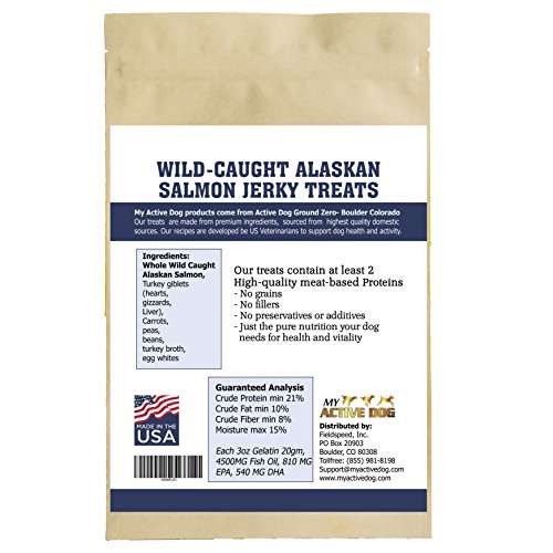 -. Binding : Misc. -. Brand : My Active Dog -. Label : My Active Dog -. Manufacturer : My Active Dog -. PackageQuantity : 1 -. ProductGroup : Pet Products -. ProductTypeName : PET_SUPPLIES -. Publisher : My Active Dog -. Studio : My Active Dog -. Title : My Active Dog All-Natural Jerky Treats-Grain-free, Rich in Protein, Omega3, Bite-sized Snacks for Training&Rewards. Vet-Developed Recipe. Made in FDA Inspected Plant from All USA Ingredients
