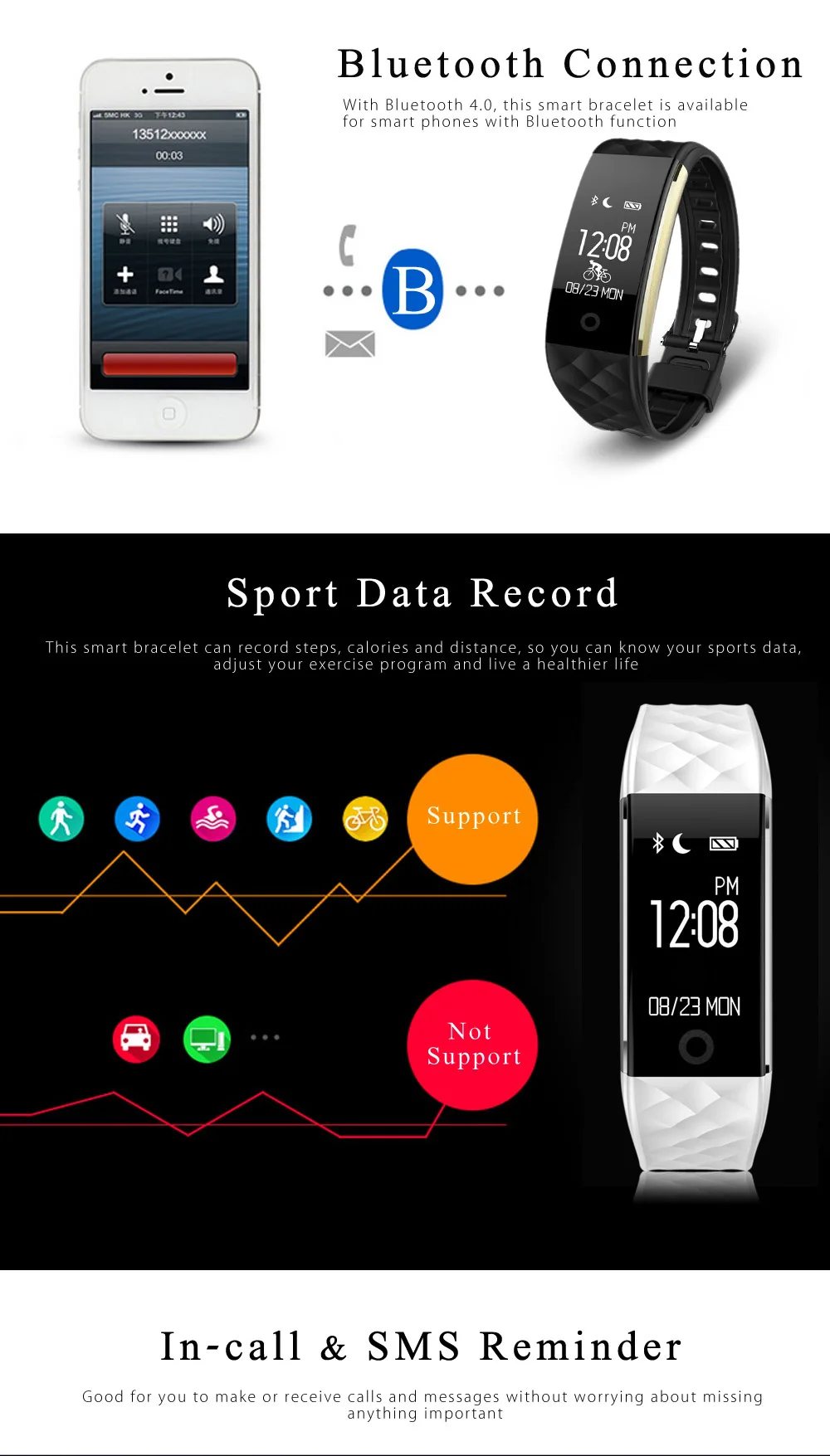 Feature:Sleep Tracker,Message Reminder,Call Reminder,GPS,Heart Rate Monitor,Alarm,Bluetooth