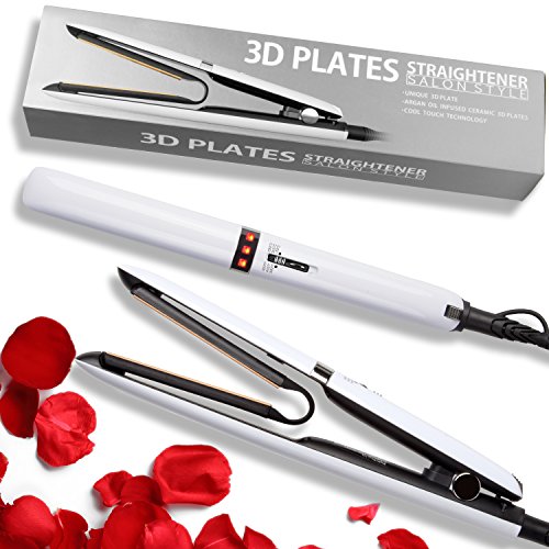 -. Feature : 【3D技術 採用】プレートは3D技術を採用し、髪をぴっくり挟めます。滑りが良く、耐久性や熱伝導にも優れており、熱を均一に届けることでムラなくスタイリングが可能です。 / 【セラミック アルガンオイルコーティング】プレート表面にセラミックコーティングだけではなくて採用し、アルガンオイルも付きます。プレスと同時に髪の毛に潤いを与えてくれ、熱から髪をよく守ります。 / 【温度調整】プロ仕様で、170℃から230℃まで調節可能なので、髪質に合わせて適切な温度が調節できます。 / 【海外対応】110~240V対応で、変圧器無しでも海外で使用可能に。出張、旅行時にとても便利です。メーカー1年保証なので安心してご使用いただけます。 / 【高安全性】約60分で自動で電源が切れる機能、絡まらないため360°回転コード、安全ロックなどの機能を搭載し、ヤケドや火事を防ぎます。さらに、温度が上がった状態でも断熱材があるため、万が一手で触れてしまっても、本体は熱くないので火傷の心配もありません。