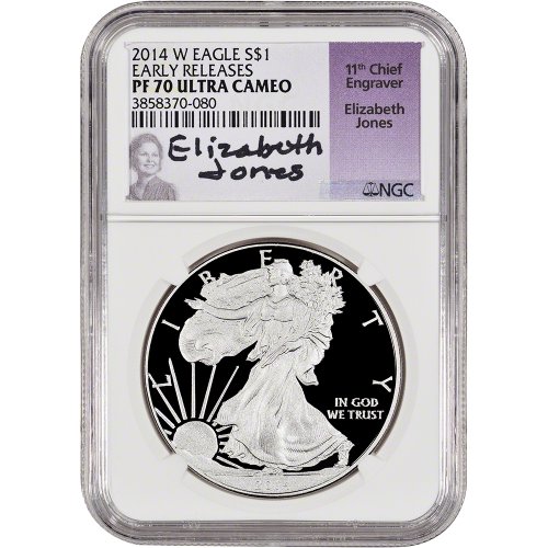 2014 W American Silver Eagle Proof $1 PF70 - Early Releases - Jones Signed NGC