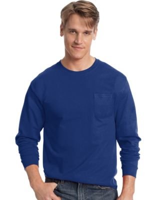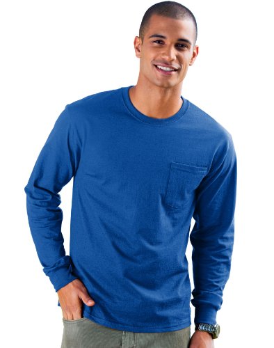 Hanes Tagless Long Sleeve T-Shirt with a Pocket, Deep Royal, Medium