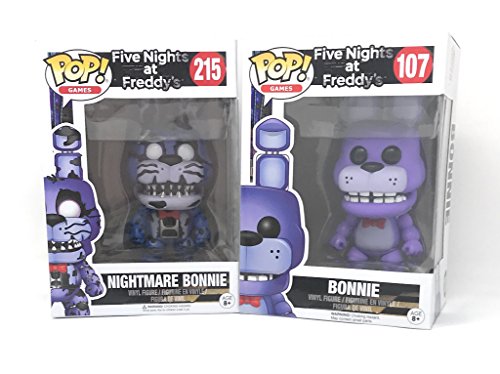 -. Feature : each figure stands 3 ¾ inches tall / both pops are from the Five Nights at Freddy's Series / Bonnie is pop #107 / Nightmare Bonnie is pop #215 / each pop comes in a windowed display box