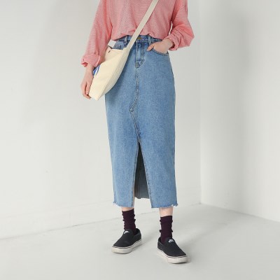 style 데님스커트 / 앞슬릿 / 롱