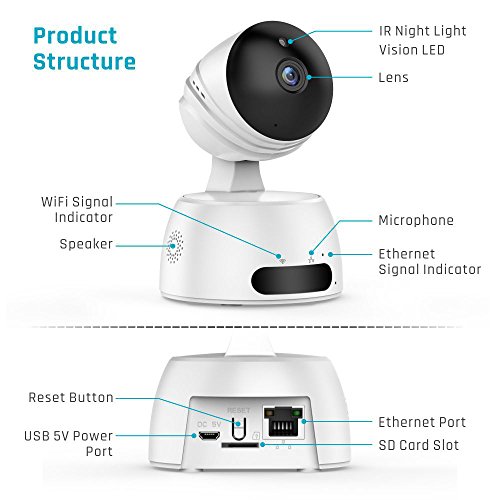 -. Feature : 【 1080P HD IP Camera with 135 Wide-View Lens 】 1920*1080P, this WiFi IP camera designs with high definition brings you a crystal clear live stream; 135 degree wide-angle advanced glass lens, 350 degree horizontal pan, 100 degree vertical-angle tilt, these features bring you a complete 360 degree view coverage; Use your devices to remote control this baby camera, zoom it / out, never leave out details about your babies' happiness / 【 Indoor Security Camera with Night Vision 】 IR distance is up to 30 feet; Use it as a Baby Monitor, it can support you to snap a screenshot for a happy moment or make a record; store the record in the SD card, not support cloud box / 【 Easy to Set up 】 Scan the QR code (in the User Manual) to download the APP or you can search to find it via APP Store(iOS System) or Google Play (Android System); use 2.4G WiFi to connect IP security camera with APP in the first time or the ethernet network cable is OK to connect, too / 【 Motion Detection & Two-way Audio 】 Detection notification will be sent to you intelligently when wireless security camera detects something; built-in mic and speaker support two way audio; talk to your baby, pets and elders when you're not at home / 【 12 Months Warranty & Package 】 Package contains 1 wireless IP camera, 1 base, 2 grub screws, 2 expansion particles, 1 detailed user manual; Note: DO NOT including of SD card; iSPECLE offers 12 month warranty for this WiFi camera. We aim at offering P.R.Im products as well as prompt & efficient customer service for customers. Have a nice purchase!