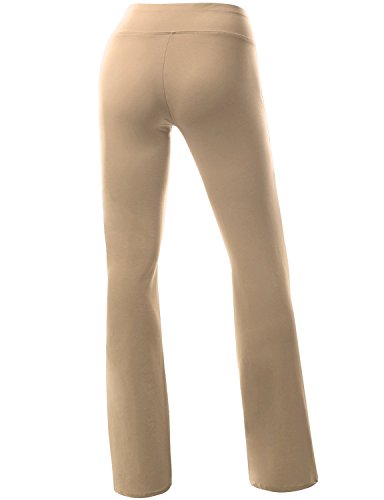 NINEXIS Women's Active Workout Bootleg Yoga Running Pants BEIGE L