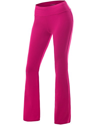 NINEXIS Women's Active Workout Bootleg Yoga Running Pants HOTPINK L