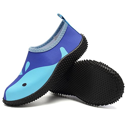 -. Feature : *RUBBER OUTSOLE & FOOT SAFETY -- Thick rubber sole with better durability and shock absorption, which brings your heel more protection and comfort for walking any distance. / * COMFORTABLE & FIT -- Breathable and smooth fabrics with fine stretch on uppers. Like socks, flexible and comfortable. / * CONVENIENCE -- Smooth neck design prevents chafing when wearing our water shoes. It is convenient to wear and take off. / *VARIOUS SIZE AVAILABLE -- Some are designing multiple versions to fit different feet. Boys and Girls size are available. / *OCCASION -- Beach, swimming, pool, weight training, wake-boarding, sailing, boating, kayaking, windsurfing, cycling, jogging, walking, fishing, beach volleyball, gardening, lawn, car-washing .