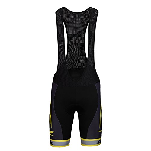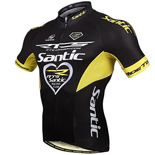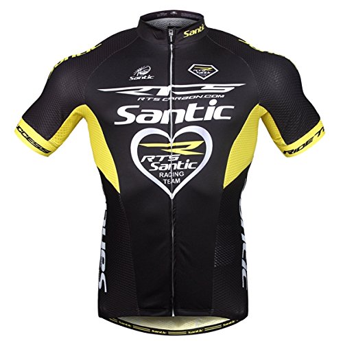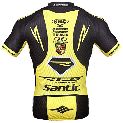 Feature : Santic Mens Bicycle Bike Cycling Suits Cycling Short Sports Jersey Short Sleeve And Bib Shorts Specifications: Brand: Santic Material: 100% Polyester(top) 82% nylon 18% spandex(pants) Color: Black and yellow Size: M,L,XL,2XL Size chart: US Size S M L XL Asian Size M L XL XXL Note : 1cm=0.3937 inch,1inch =2.54cm The Clothes Height(cm) 165-170 170-175 175-180 180-185 Weight(cm) 58-65 66-73 74-81 82-90 After length(cm) 51.5 53 54.5 56 Before length(cm) 66 68 70 72 B / ust(cm) 43 45 47 49 The Pants Pants length(cm) 49 50 51 52 Sit around (cm) 39 41 43 45 Attention: Please note that you should place your order in US size, however the tags inside the items will show in Asian size. Features: Coolmax moisture technology ensures maximum transfer and breathability 3 pockets on the back make it easy to store things Reflective stripe on the back make you safe riding at night Sublimation printing technology bright color Anatomic multi layer construction for / extra comfort Breathable,vent hole and tulle tailoring process. Shock absorption,silica gel pad play a buffer role. Wash: Machine or Hand Wash Cold with Mild Soap Wash Seperately Close Zipper before washing inside out Do not dry clean Do not Bleach Do not twist or wring Do not brush, Do not bleach,Do not Iron Package includes: 1 x short sleeve 1 x bib shorts