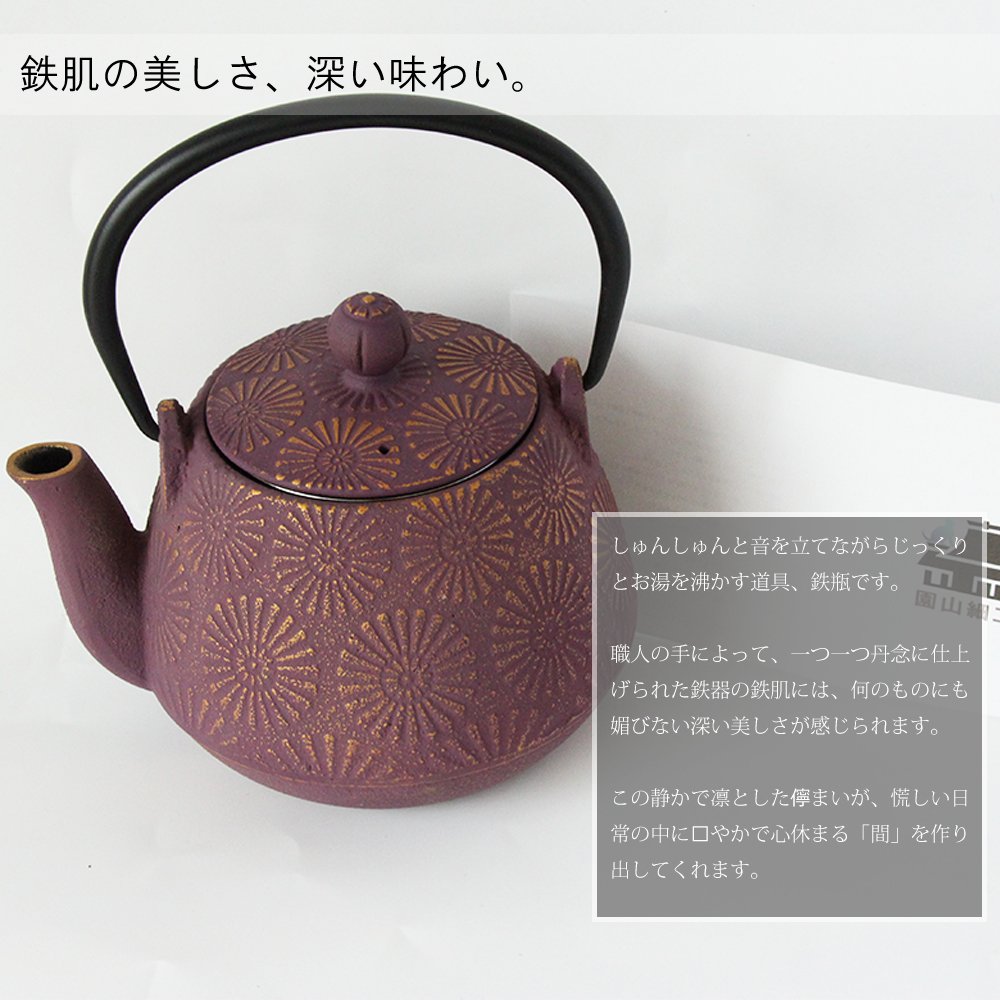 Hot water boiled in an iron bottle is said to be "mellow hot water" and has long been favorite for tea enthusiasts including tea ceremonies.