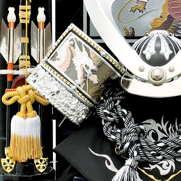 ・親御様、お子様、縁者様の健康と発展を願いながら職人が丁寧に仕上げた五月人形飾り/のぼりが初節句のお祝いにはなを添えます。