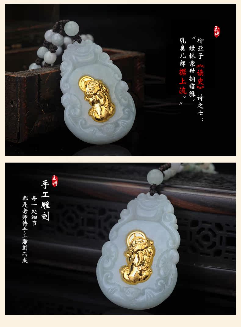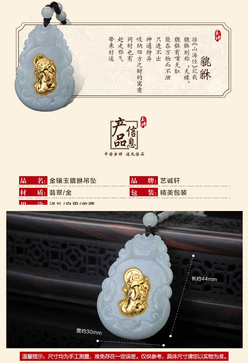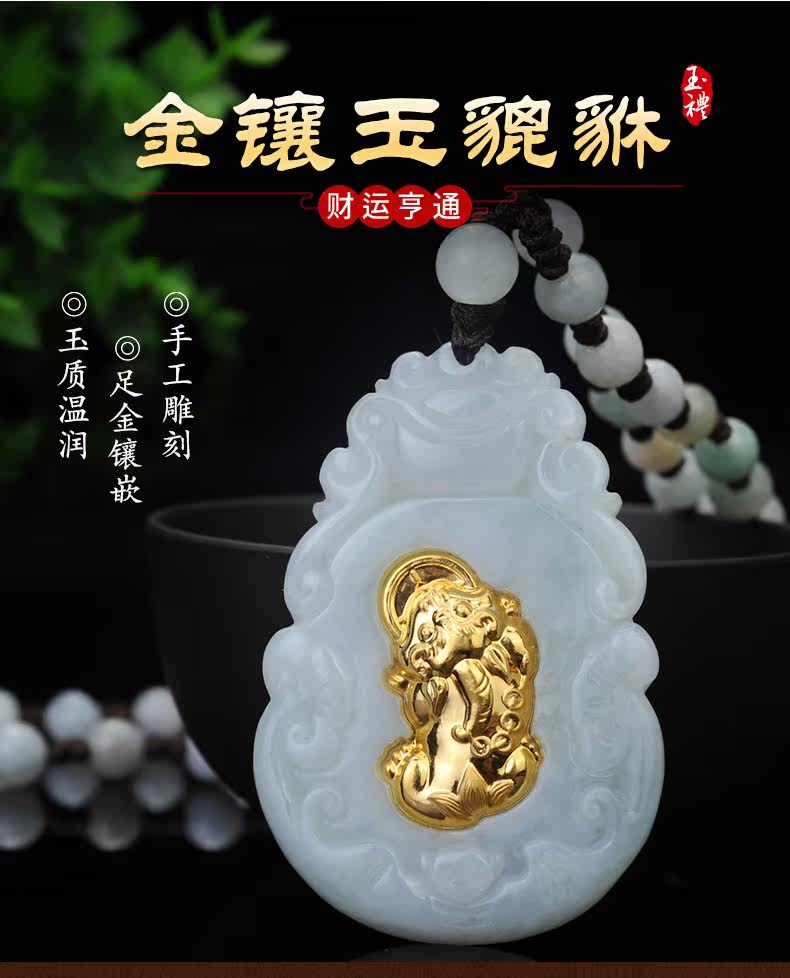 开光金镶玉貔貅吊坠男女款本命年足金翡翠玉石挂坠项坠水晶饰品