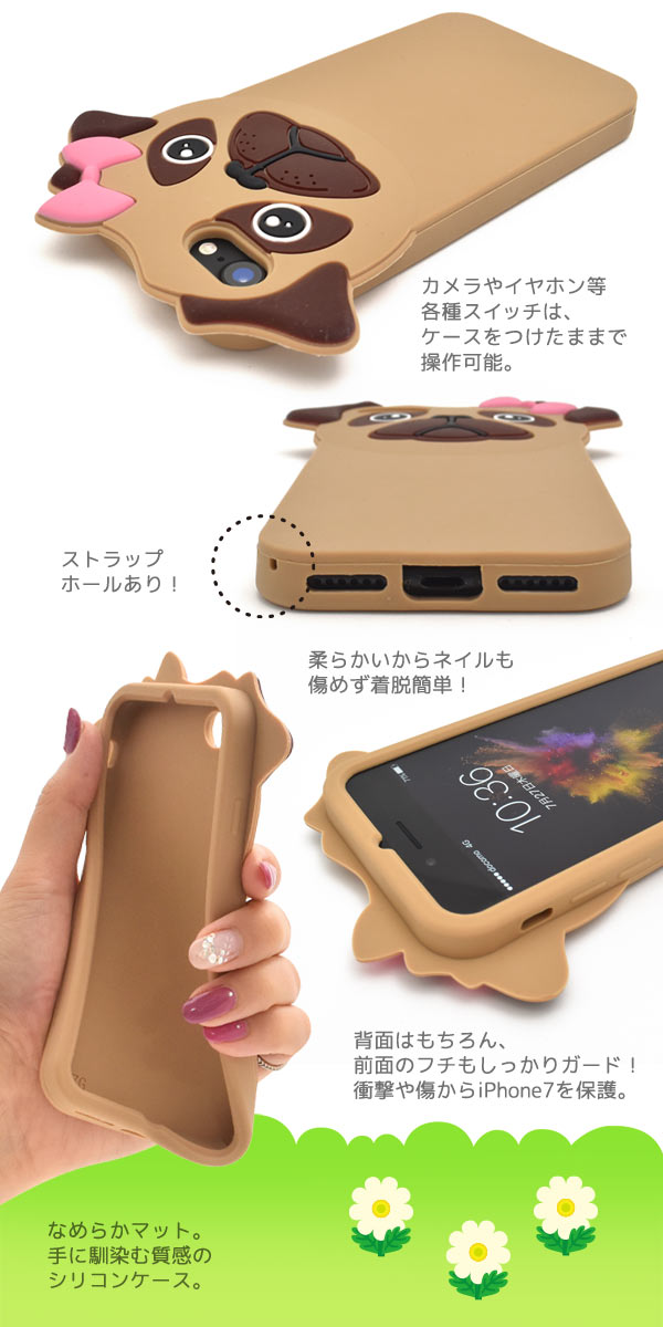 愛くるしいブサカワフェイス!iPhone7用 パグシリコンケース