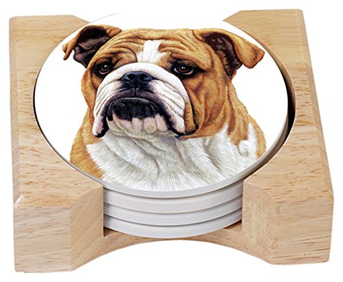 Counter Art Absorbent Coasters Bulldog In Wooden Holder, Set of 4