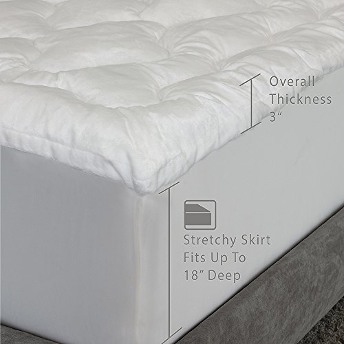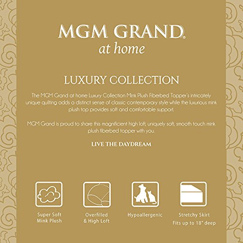 -. Brand : MGM GRAND® -. Color : White -. EAN : 0814168023401 -. Feature : MGM GRAND® at homeTM Mink Plush Fiber Bed Mattress Topper - Inspired by the SKYLOFTS at MGM GRAND® Resort in Las Vegas / THE BEST HOTEL FIBER BED MATTRESS TOPPER- luxuriously soft mink plush pillow top provides a soft and comfortable protective layer to your mattress while the intricately unique quilting adds a distinct sense of classic contemporary style with an integrated bed skirt to hold bed topper in place all night long. / HYPOALLERGENIC - 100% Hypoallergenic and includes a 1" gusset for added support and luxurious softness / GOOSE DOWN ALTERNATIVE FILL - our special blend of Goose Down Alternative polyester fiber provides superior pillow top softness so both you and your sleep partner will sleep more soundly / EASY CARE - Care Instructions: Machine Washable Cold, Do not Bleach, Tumble dry low. -. Label : Rio Home Fashions -. Manufacturer : Rio Home Fashions -. ProductGroup : Furniture -. ProductTypeName : HOME_FURNITURE_AND_DECOR -. Publisher : Rio Home Fashions -. Size : Twin XL -. Studio : Rio Home Fashions -. Title : MGM GRAND at home Mink Plush Fiber Bed Mattress Topper – Quilted Pillow Top Bed Topper Filled with Goose Down Alternative Fiber with Decorative Quilting, Skirt, Hypoallergenic (Twin XL) -. UPC : 814168023401