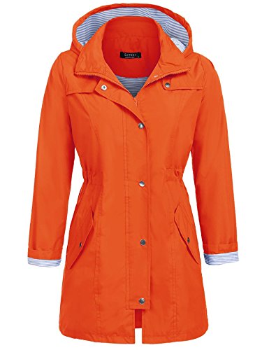Unibelle Womens Lightweight Hooded Raincoat Active Outdoor Waterproof Jacket (Orange, S)