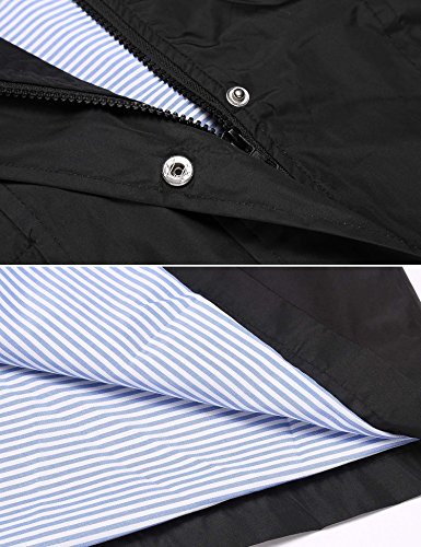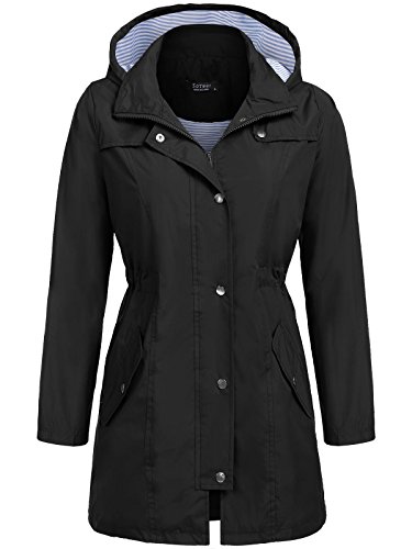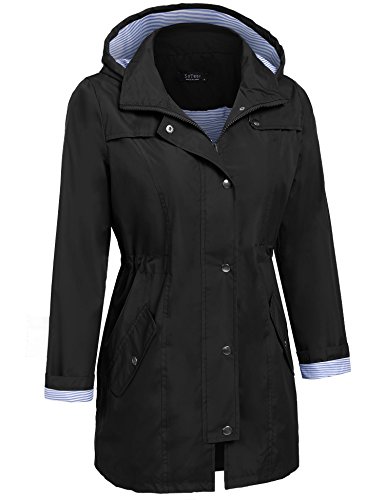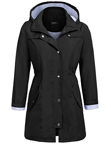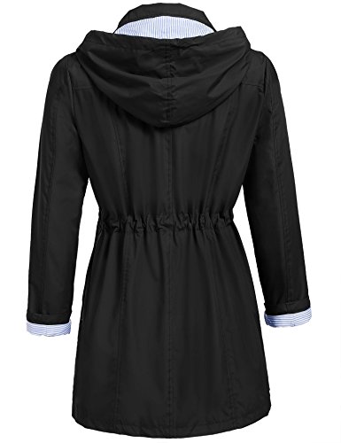 Unibelle Women Striped Hooded Packable Outdoor Waterproof Lightweight Rain Coat (Black, S)