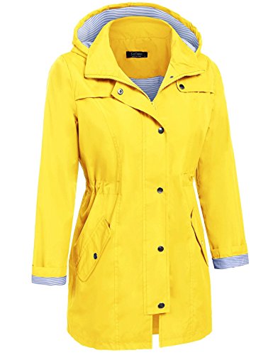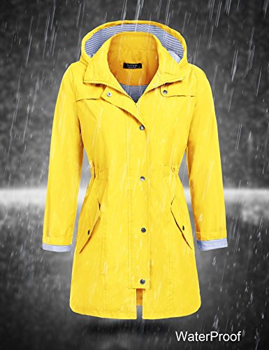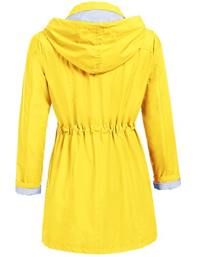 Unibelle Women's Lightweight Waterproof Raincoat with Hood Long Outdoor Rain Jacket (Yellow, M)