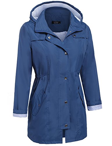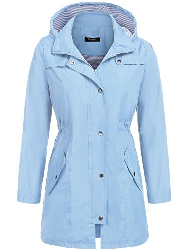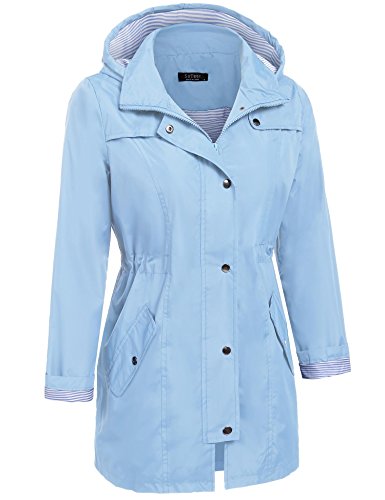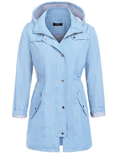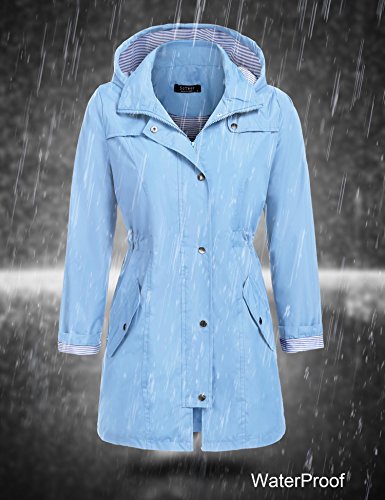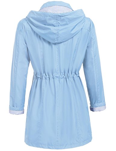 Unibelle Women's Waterproof Raincoat Outdoor Hooded Rain Jacket Windbreaker (Lake Blue, M)