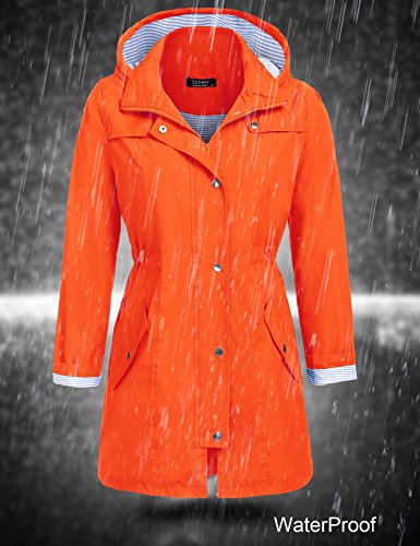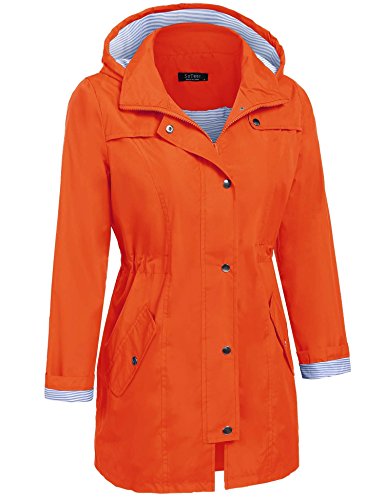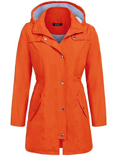 Unibelle Womens Lightweight Hooded Waterproof Active Outdoor Rain Jacket (Orange, L)