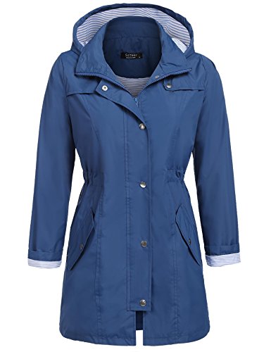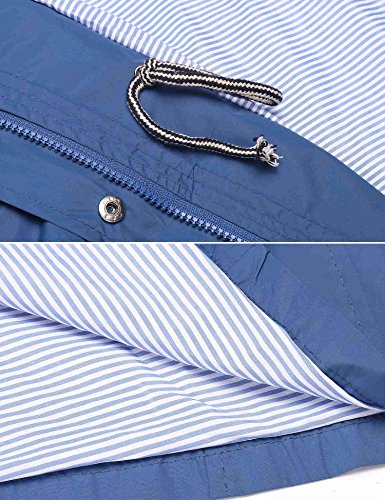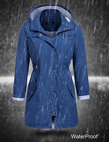 Unibelle Womens Lightweight Travel Trench Waterproof Raincoat Hoodie Windproof Hiking Coat Packable Rain Jacket (Navy, L)