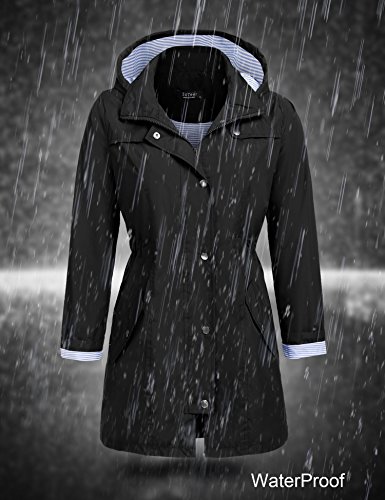 Unibelle Women Waterproof Lightweight Rain Jacket Outdoor Hooded Raincoat (Black, XXL)