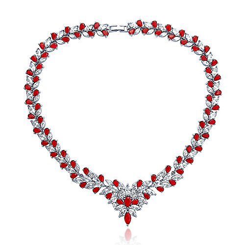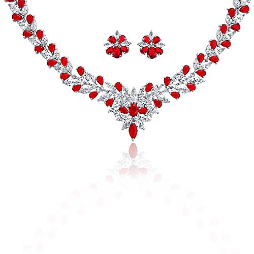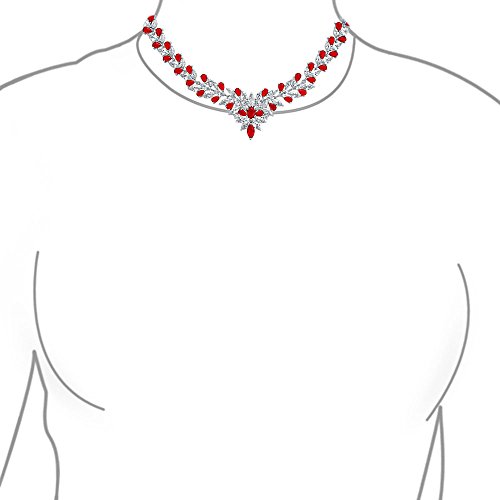 -. Feature : Red Glass Ruby Statement Jewelry Set / Stone: 10 mm / Material: Rhodium Plated Brass, Cubic Zirconia, Glass / Measure: Necklace: 16.5 inch L x 1.18 inch W, Earrings: 0.72 inch L x 0.68 inch W / Weight: 50 grams