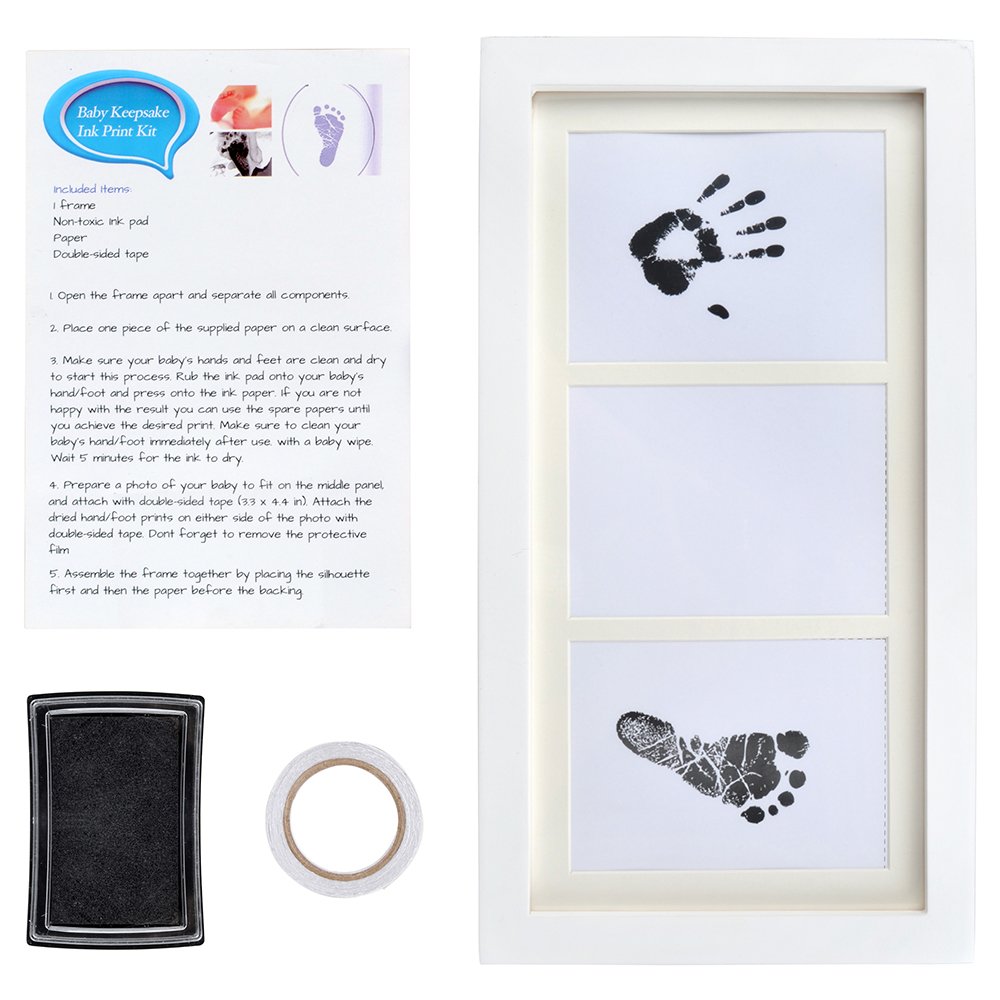 Remove the ink pad and the five print papers from the package, wash the baby's limbs, press it against the ink pad, and push the bill against the print paper.