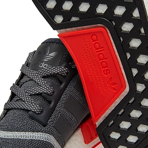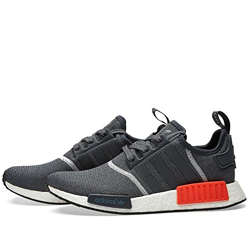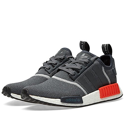 Product Description The adidas NMD R1 has been one of the most sought after sneakers of 2016. Here we have the model boasting a dark grey mesh upper, capped off with a bright orange micropacer. 0