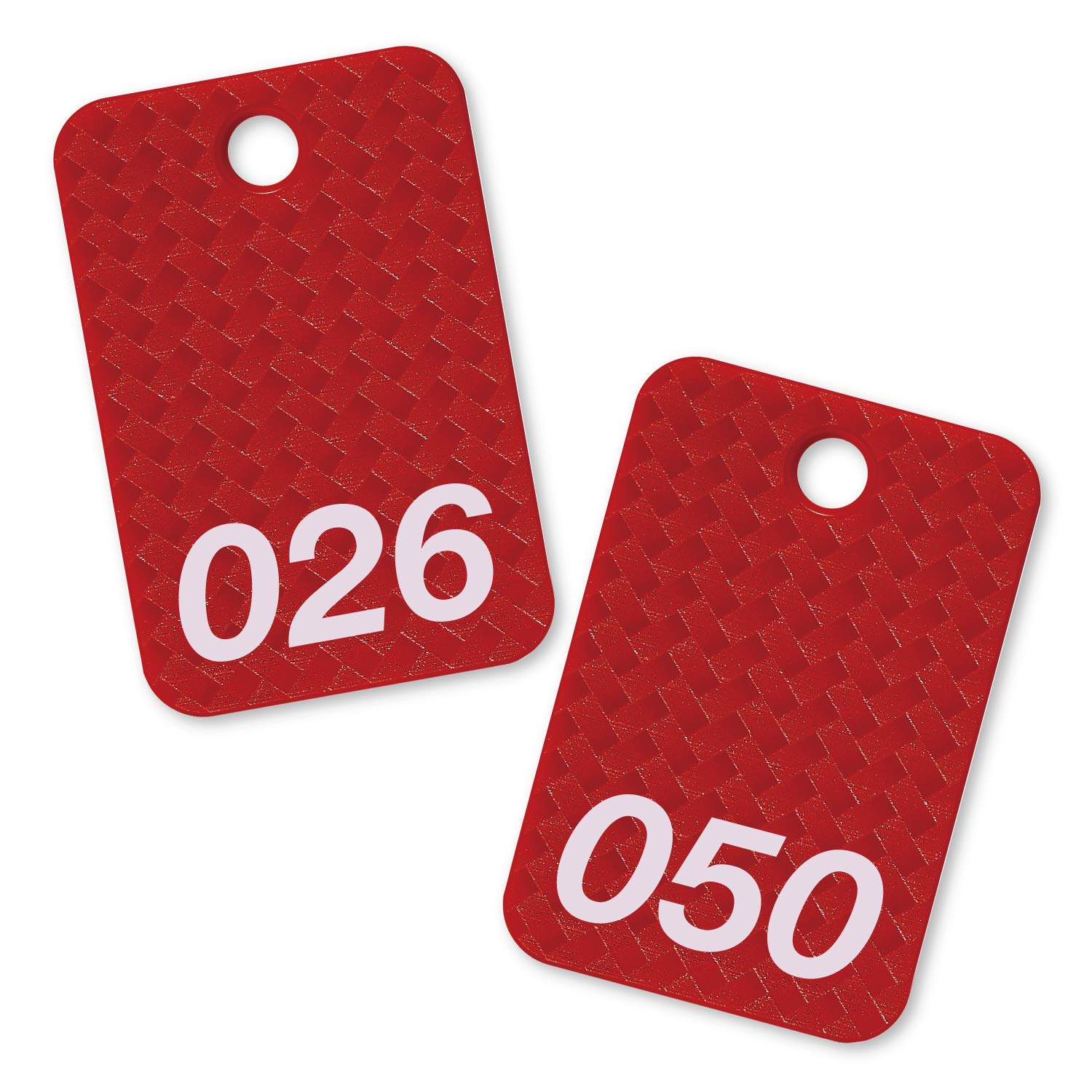 高級感のある網目柄の角型番号札 荷物のお預かりや順番待ちの整理券として使用できます。 【サイズ】W40×D60×H2.7 【穴径】約6.5mm 【入り数】25枚 【内容】番号札26~50 【材質】再生PS 【生産国】日本