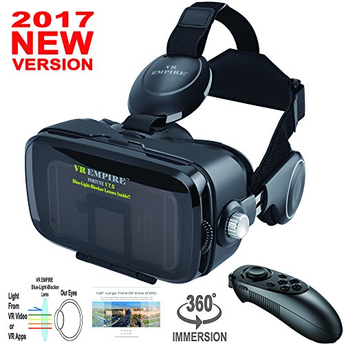 -. Title : VR EMPIRE 3D VR Headset With Wireless Remote Controller; Anti-Blue-Light Lenses; 120° FOV; Stereo Headset; phone answering button; Virtual Reality Glasses VR Goggles Fit For 4.0-6.2 inch Smartphone