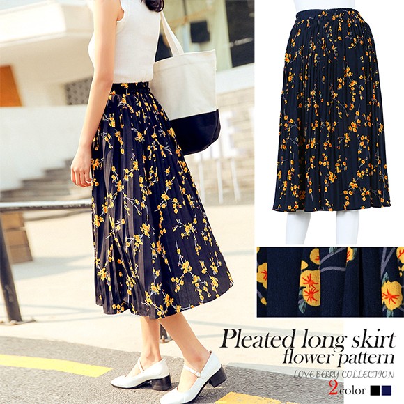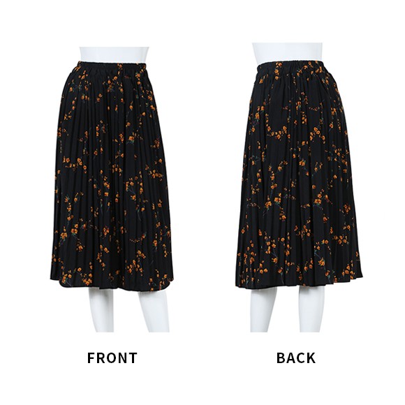 小花柄が散りばめられたロング丈のスカートです。ひらひらと揺れるプリーツが大人レディーな印象に★シックな色合いでフラワー柄だけどガーリーになり過ぎない落ち着いた雰囲気を演出してくれます!ウエストがゴムになっているのトップスをINしてもきつくなり過ぎないのも◎スタイルカバーにもなる揺れるたびにお洒落なロングスカートです♪【商品・サイズ詳細】※ウエスト部分がゴムになっているのでウエストのみ伸縮性あり。※裏地付き。※裁断の関係で柄のデザインが写真と多少異なる場合が御座います。※画像の色味に関してで御座いますがお使いのパソコンやスマートフォンにより実際の色味とは若干異なる場合も御座います。※下記のサイズ詳細は平置きで測った際のサイズとなっておりますので多少の誤差(約2-3cm)は予めご了承下さい。※お客様の体型や身長により写真のモデルとの着用感に多少の違いが出る場合も御座います。【モデル身長〇cm〇サイズ着用】素材:ナイロン・ポリエステル総丈:約75cm ウエスト:約60-70cm ヒップ:約100cm