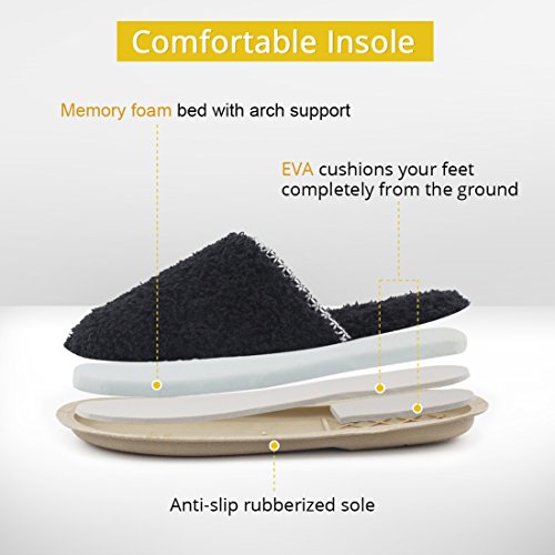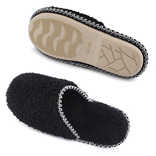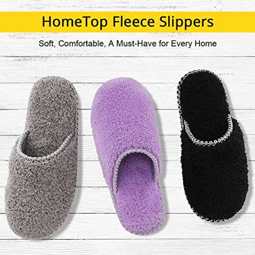 HomeTop Women’s Cozy Plush Fleece Slip On Memory Foam House Slippers (Large / 9-10 B(M) US, Black)