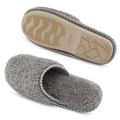 HomeTop Women’s Cozy Plush Fleece Slip On Memory Foam House Slippers (Large / 9-10 B(M) US, Gray)
