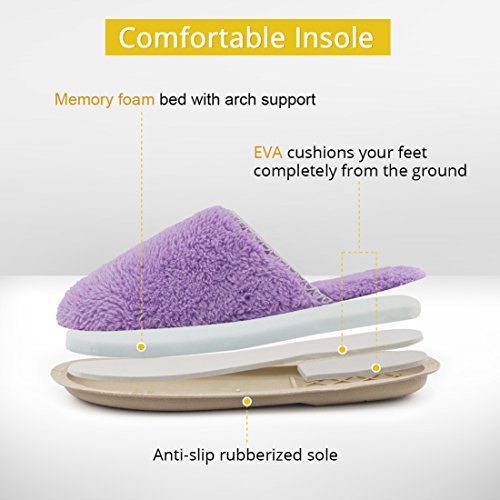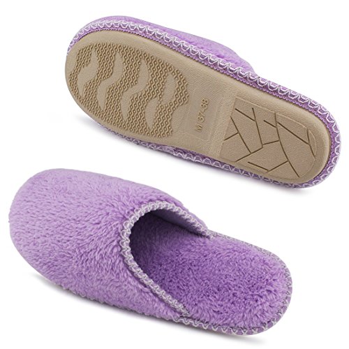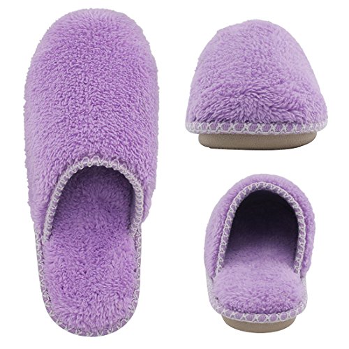 HomeTop Women’s Cozy Plush Fleece Slip On Memory Foam House Slippers (Medium / 7-8 B(M) US, Light Purple)