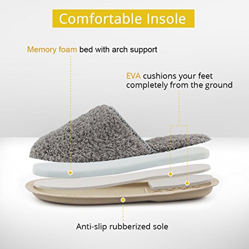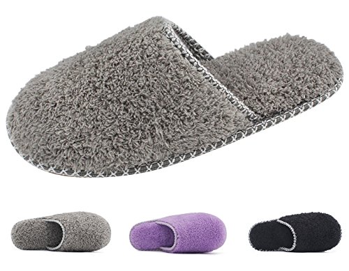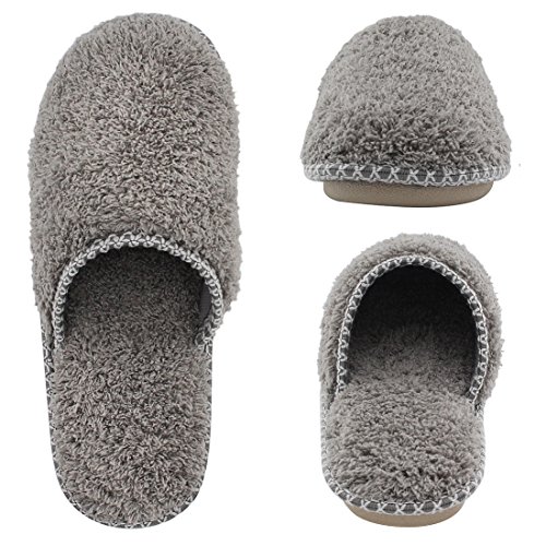 HomeTop Women’s Cozy Plush Fleece Slip On Memory Foam House Slippers (Small / 5-6 B(M) US, Gray)