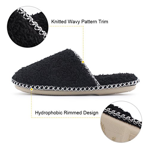 HomeTop Women’s Cozy Plush Fleece Slip On Memory Foam House Slippers (Medium / 7-8 B(M) US, Black)